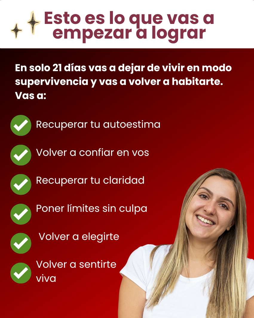 Muchas mujeres comienzan a notar alivio y mayor claridad emocional desde los primeros días, porque empiezan a entender qué les pasa y a dejar de culparse. El proceso es personal y cada paso que des suma.